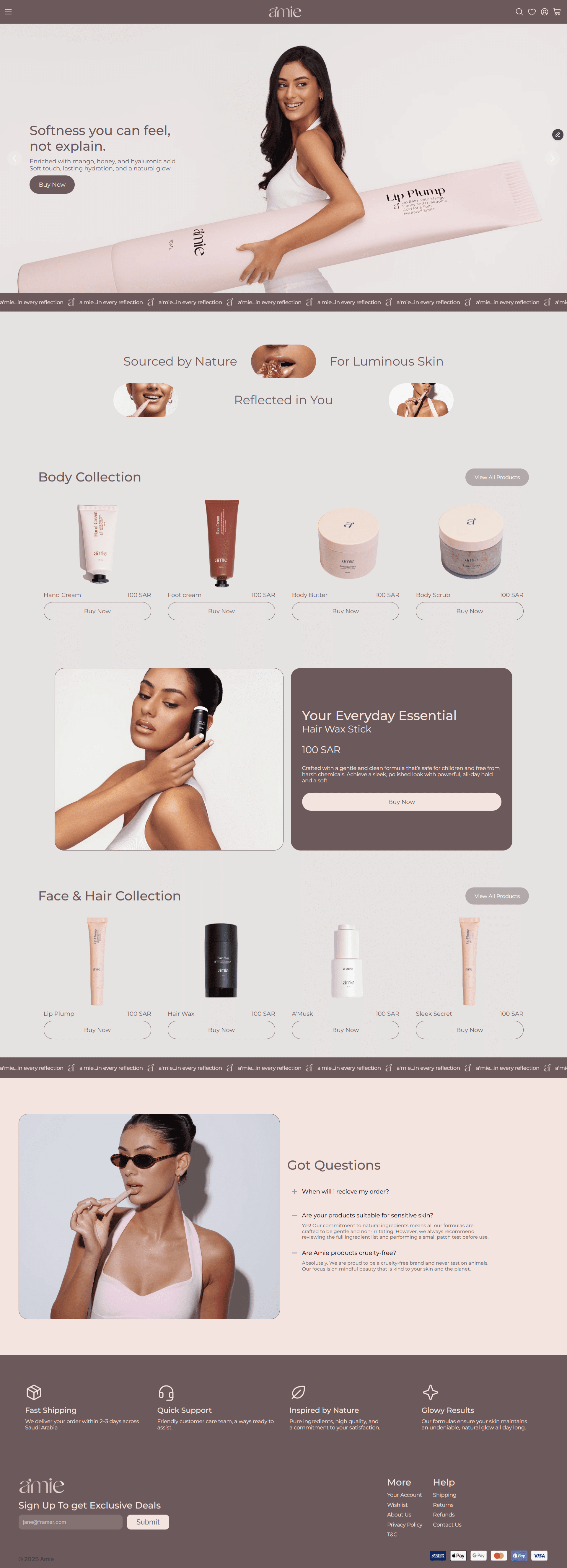 Amie a Saudi Beauty brand growing regionally had an online store that had high friction and didn't reflect their brand. They required something custom and unique that reflects the brands minimal and luxurious feel.